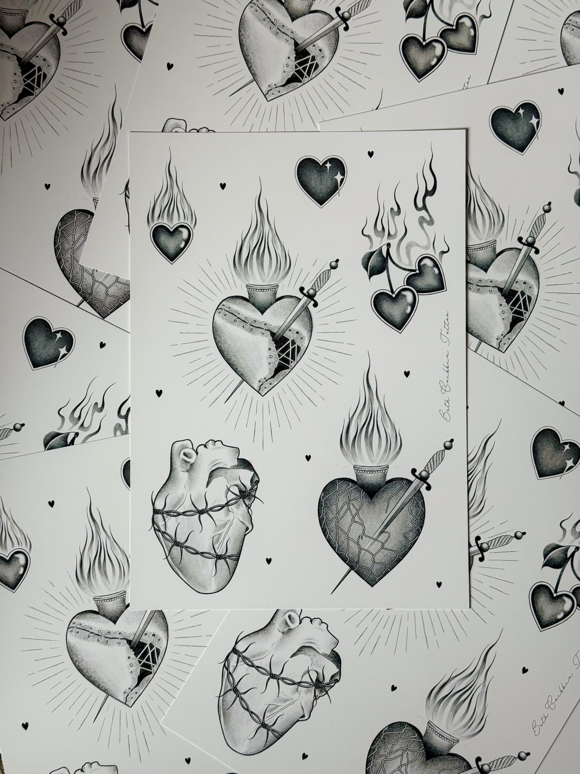 Hearts Flash Sheet A4 Art Print